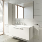 Традиционно, мебель для ванной комнаты представлена стандартным набором, в который входят навесной шкаф (обычно, с зеркалом), или же шкаф-пенал, а также тумба с умывальником. Если же для шкафа места мало, то можно приобрести полки или вешалки, выполненные в различных конфигурациях.